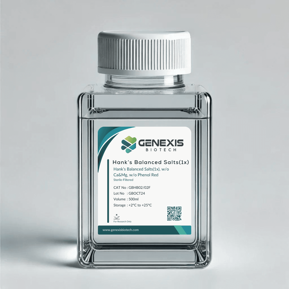 Hank’s Balanced Salts (1X), without Ca/Mg and phenol red, is a ready-to-use salt solution for cell culture applications.