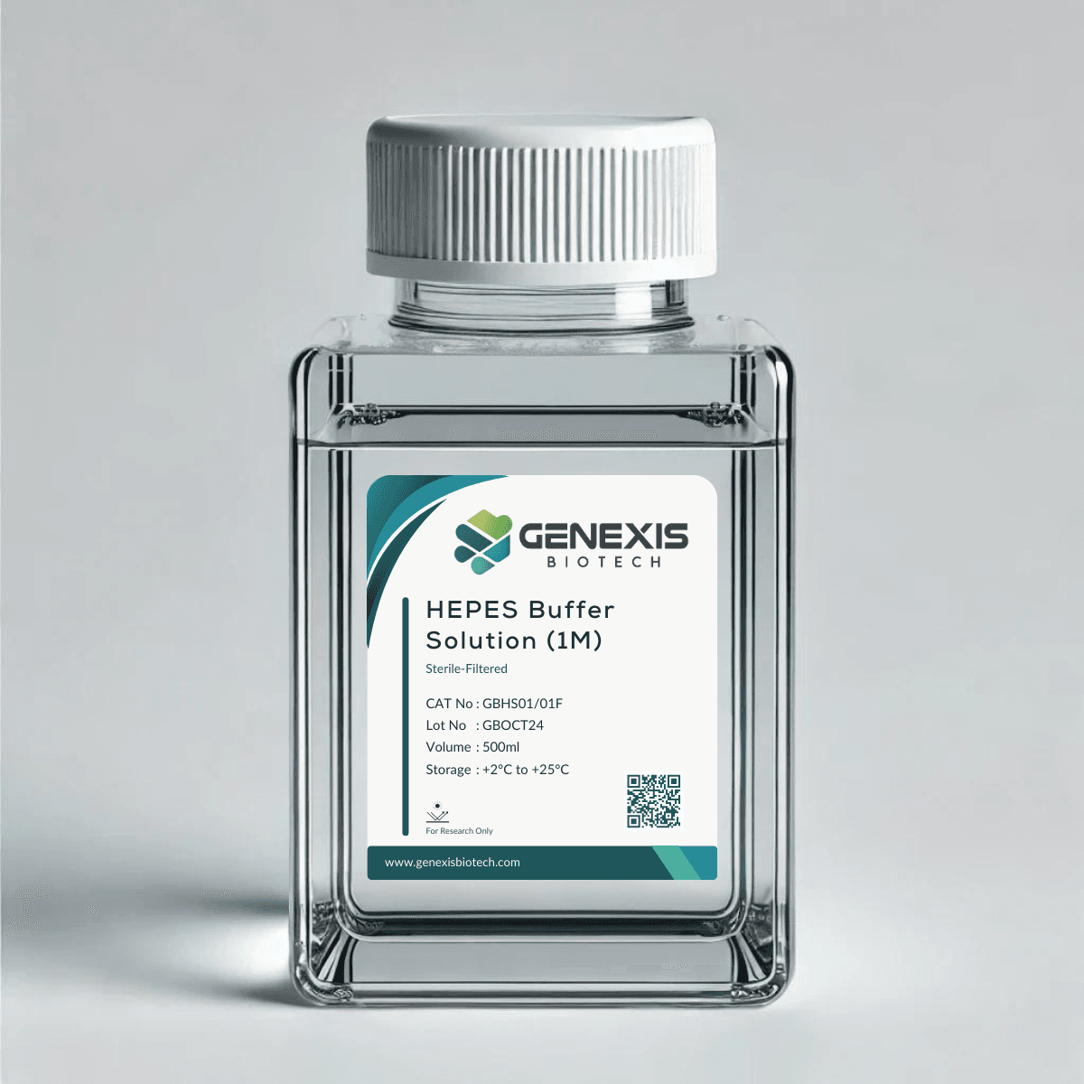 HEPES Buffer Solution (1M) is a 1M concentration of HEPES used for maintaining pH stability in cell culture and biological assays.