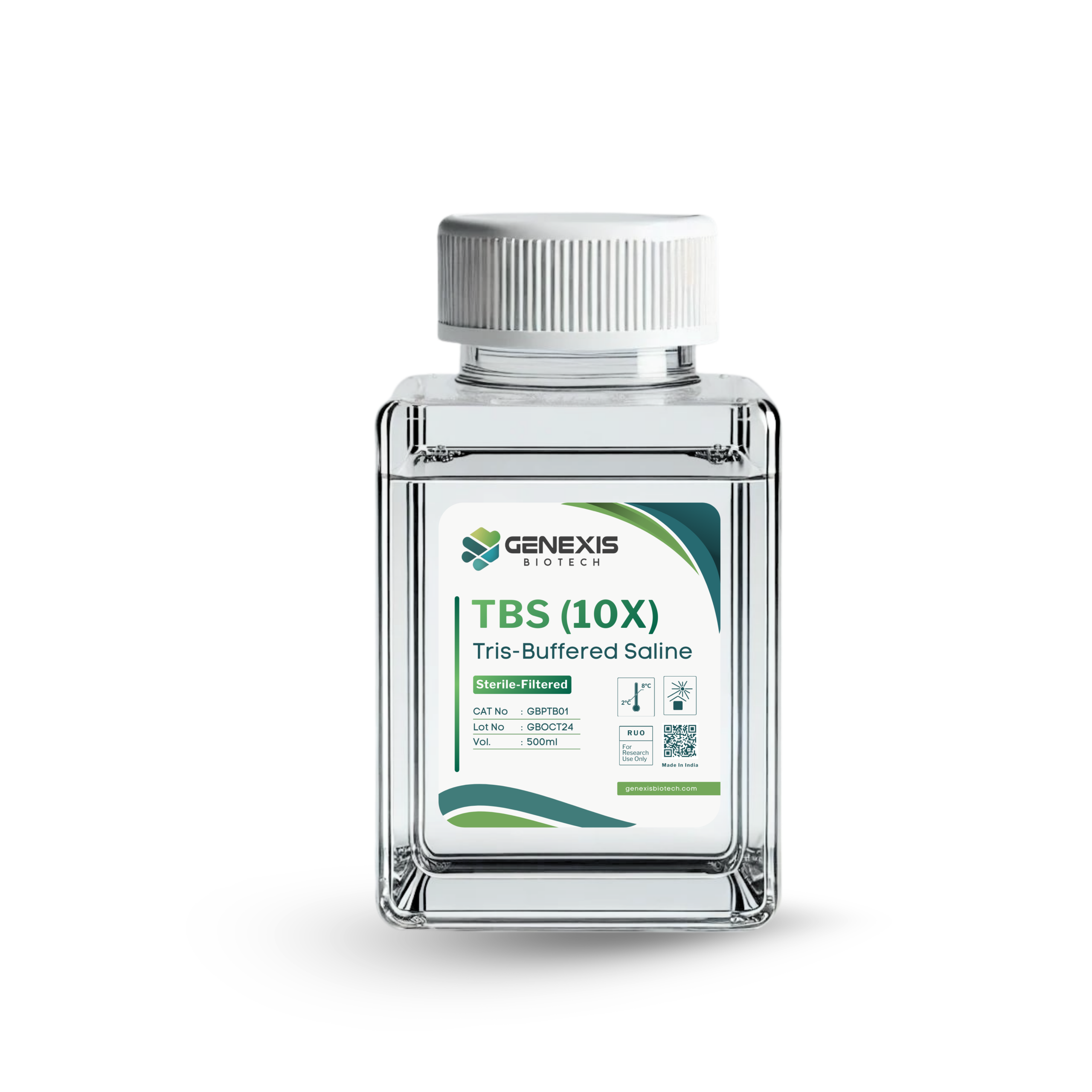 TBS (10X) is a 10 times concentrated Tris-Buffered Saline solution, typically used in immunological techniques such as Western blotting, ELISA, and antibody-based assays. It maintains pH stability and salt concentration, ensuring consistent performance in various biochemical applications.